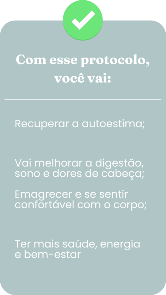 Um protocolo com cardápio e estratégias que devem ser seguidos por 7 dias para o resultado prometido. Você encontrará opções de café da manhã, almoço, lanche da tarde, jantar e ceia e outros materiais extras.